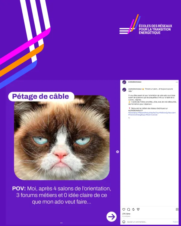 L’orientation est une étape décisive. À travers Instagram, les Écoles des Réseaux souhaitent donner de la visibilité aux métiers d’avenir, mettre en lumière la diversité des parcours possibles et contribuer à une meilleure connaissance des opportunités offertes par la filière des réseaux électriques.
